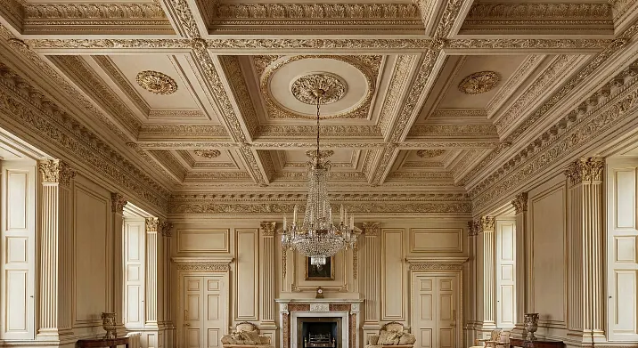 Молдинги также используются для создания кессонов — углублённых панелей квадратной или прямоугольной формы. Классический кессонный потолок — деревянные балки, образующие решётку, внутри которой находятся углубления. Современная интерпретация — молдинги, наклеенные на гладкий потолок, имитирующие балочную конструкцию без реального уменьшения высоты помещения.