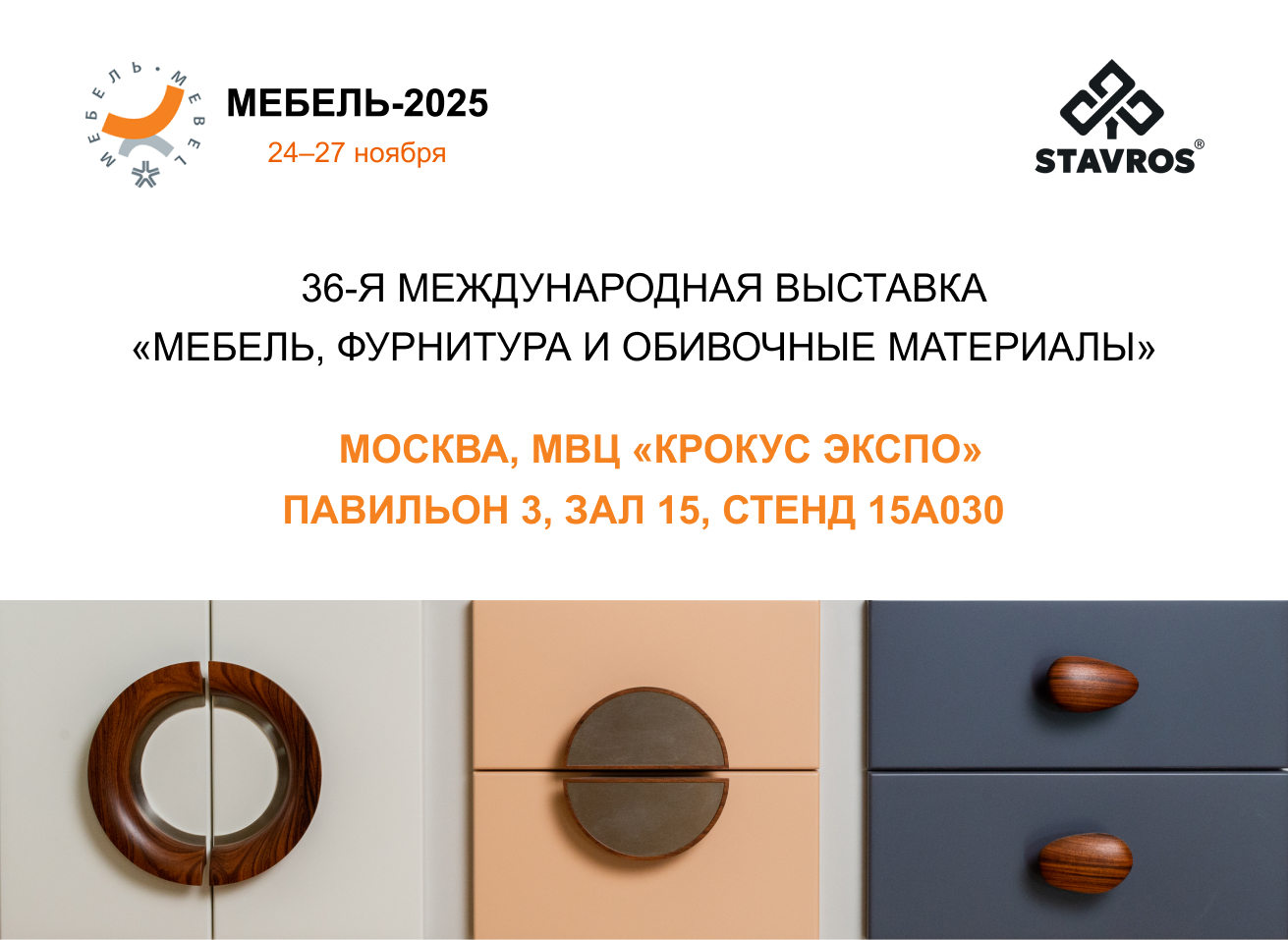 С 24 по 27 ноября 2025 года компания STAVROS примет участие в крупнейшем отраслевом событии мебельного рынка России и Восточной Европы — 36-й Международной выставке «Мебель, фурнитура и обивочные материалы — МЕБЕЛЬ-2025».