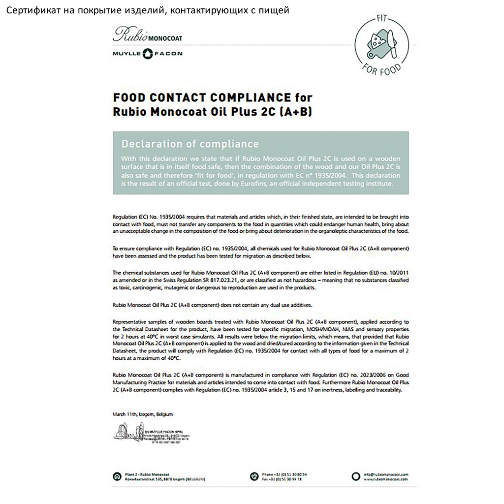 Rubio Monocoat Oil Plus 2C is produced in Belgium — a country renowned for its rich traditions in the production of finishing materials. The company Rubio Monocoat is known for its attention to detail and high quality standards, which guarantee outstanding performance characteristics of every product.