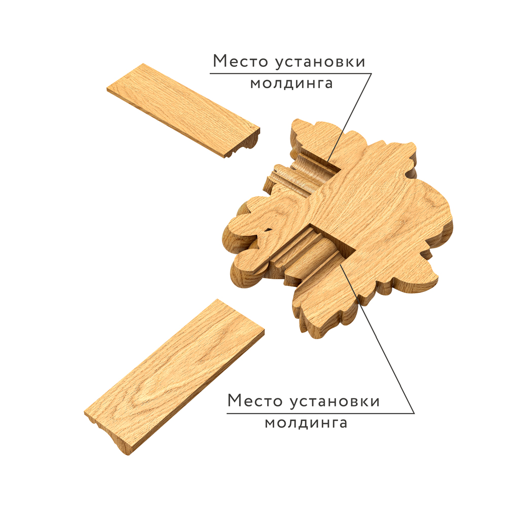 Carved appliqué N-258-1L — is a decorative element designed to embellish moldings and other architectural interior details. It is crafted from solid natural wood and features a high degree of detail and delicate carving. Thanks to milling and machine polishing, the insert’s surface is perfectly smooth and durable.