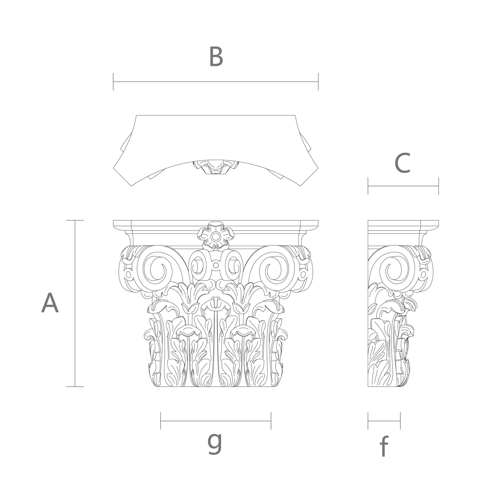 Capital as an architectural element hasancient historydating back to antiquity. The Corinthian order, to which this model belongs, was created in ancient Greece and named after the city of Corinth. Legend says that the prototype of the Corinthian capital was a basket left on the grave of a girl and overgrown with acanthus leaves.