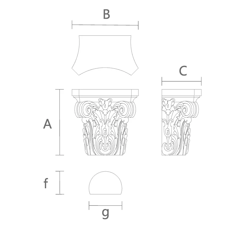 Versatility in Application: Thanks to its universal design, the capital KL-043.01 can be used in various architectural and decorative contexts, from classical to modern. It is suitable for decorating interiors, facades, furniture, and other elements.