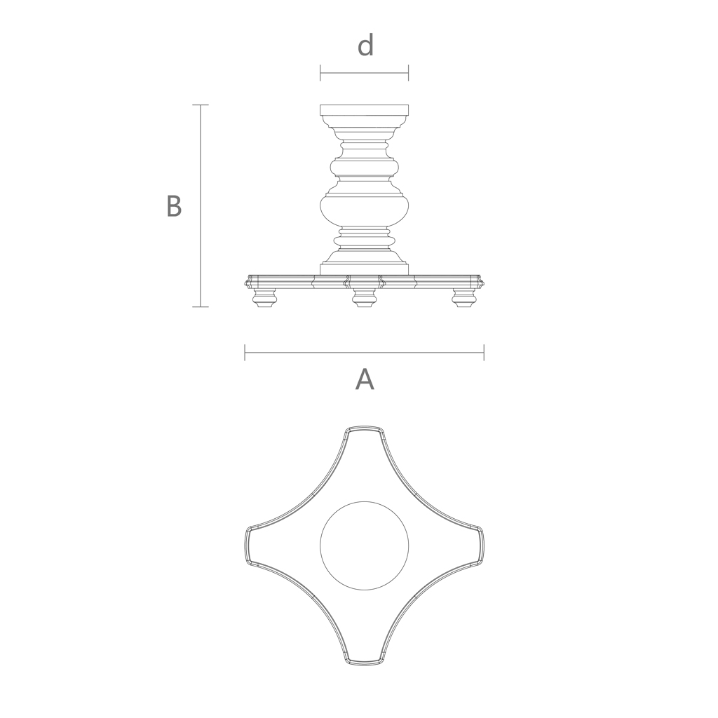 The carved pedestal STL-012 is designed according to ergonomic standards and load calculations typical for dining and formal tables in residential and public interiors. The standard height of the item is 900 mm, which corresponds to the optimal height of a dining table (720–750 mm) and ensures comfortable seating for people of different heights. The dimensions of the item are 900 x 760 x 332 mm, allowing its use for creating various types of tables: writing, dining, coffee, toilet, and others.