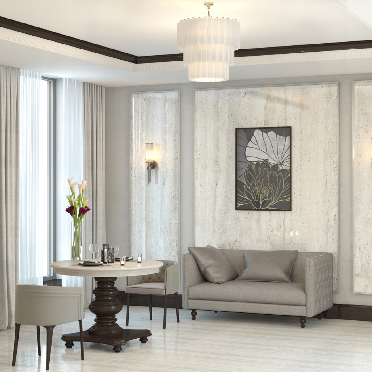 Modern classicism and transitional style allow mixing elements of different eras and styles into a single composition. In this context, a carved wooden pedestal can combine with a smooth tabletop made of glass or artificial stone, modern lighting fixtures, and minimalist accessories, creating an effect of unexpected contrast. This approach demonstrates a creative approach to interior design.