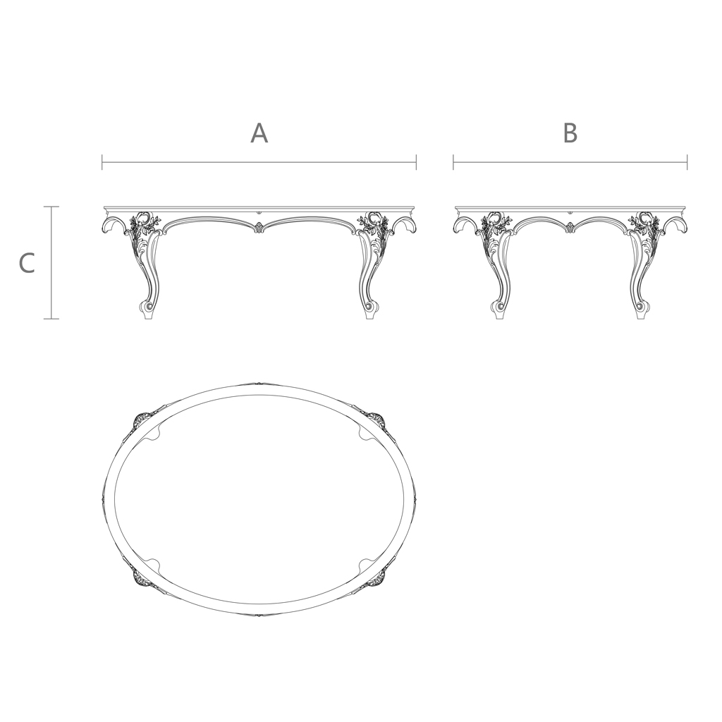 Frame STL-027-1 - An embodiment of refined elegance and French Baroque luxury. Carved oval coffee table base, designed to create a striking and functional piece of furniture that can serve as an exquisite accent in both classic and modern eclectic interiors.