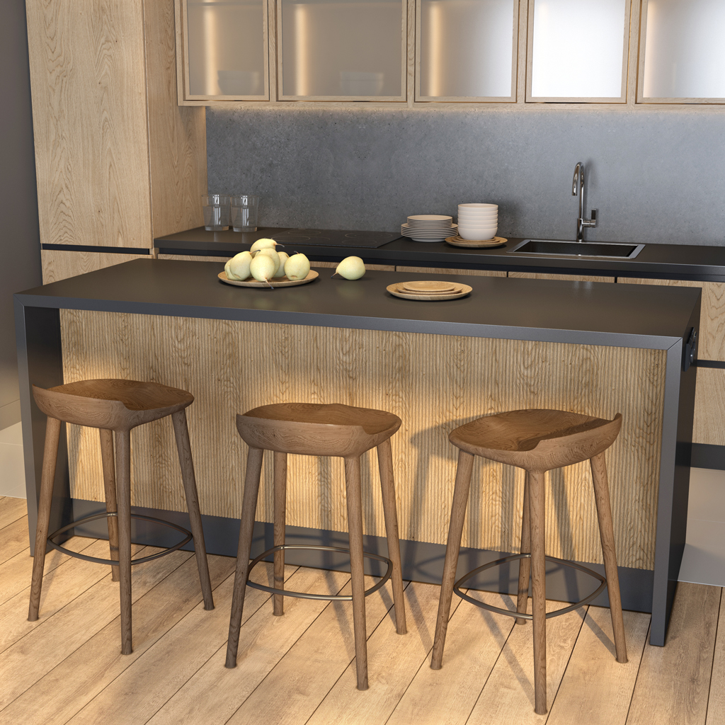 Half-bar stool STU-009 is ideal for kitchen islands and bar counters. It harmoniously complements interiors in various styles and can be used in both private and commercial settings.