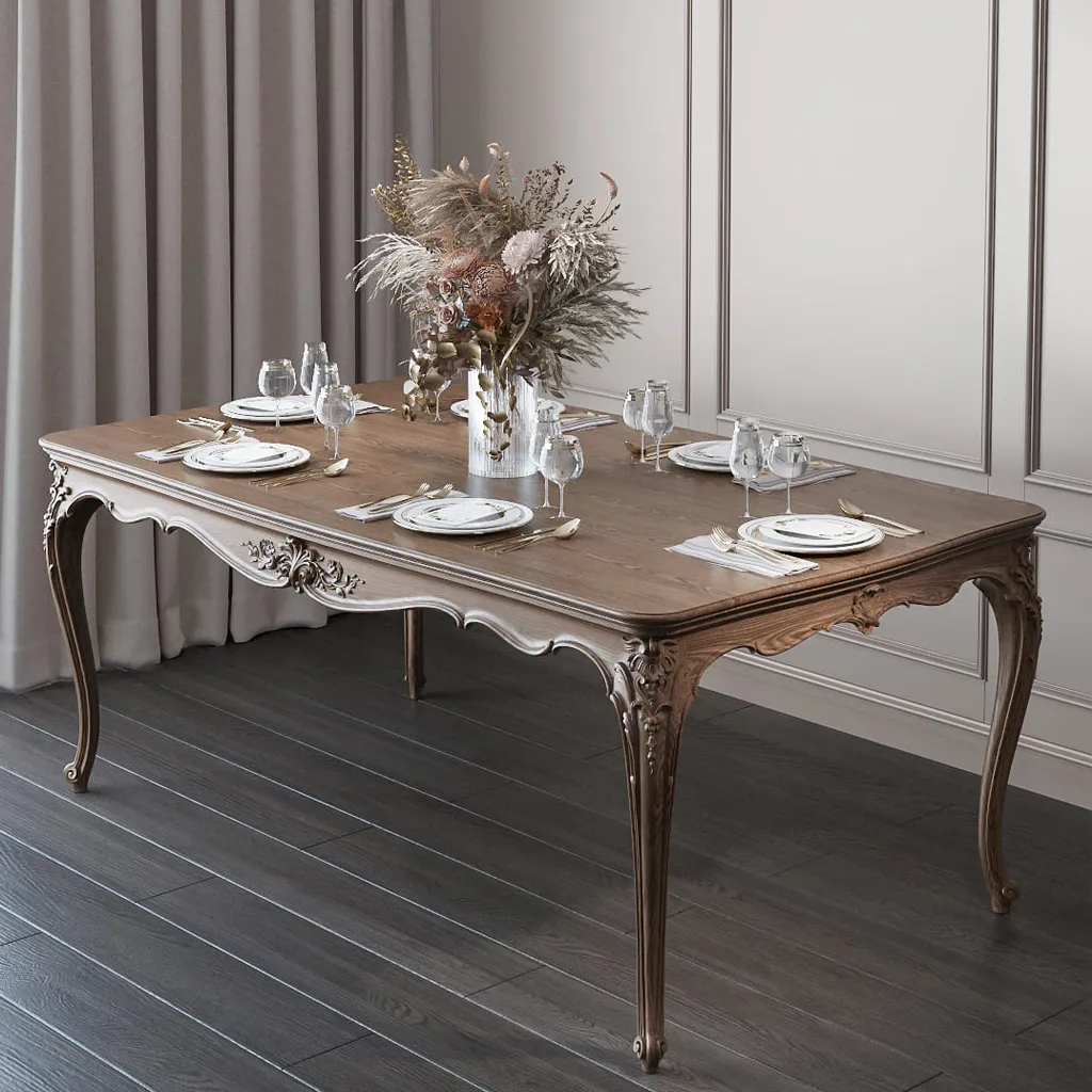 Rectangular countertop with an expressive profile in a classic style. Can be used in the construction of dining tables.