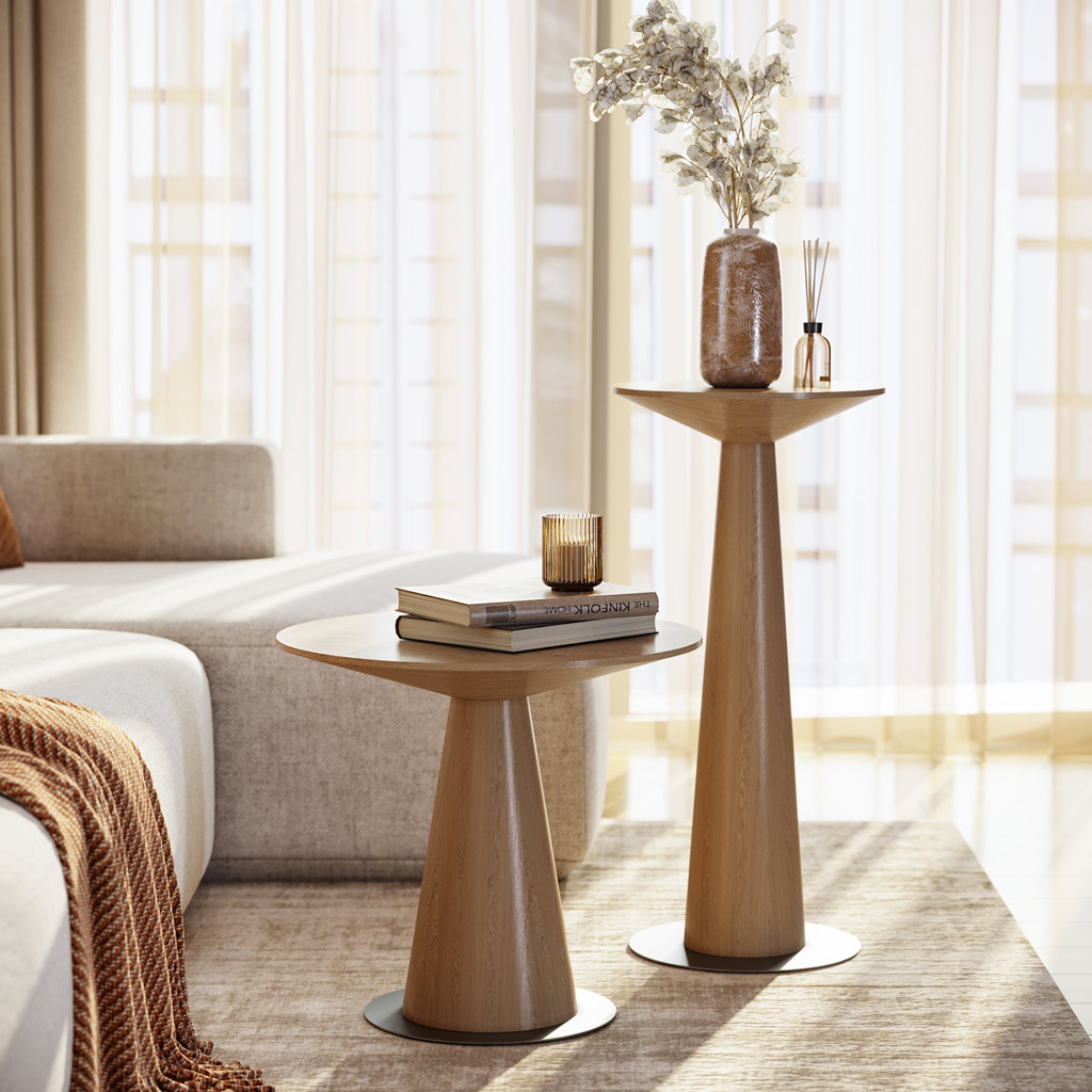This compact yet functional table embodies the philosophy of Stavros production, where every detail is meticulously considered down to the smallest detail, and material quality and craftsmanship meet the highest global standards. The conical base combined with a round tabletop creates visual lightness and harmony that will seamlessly fit into any modern or classic space.