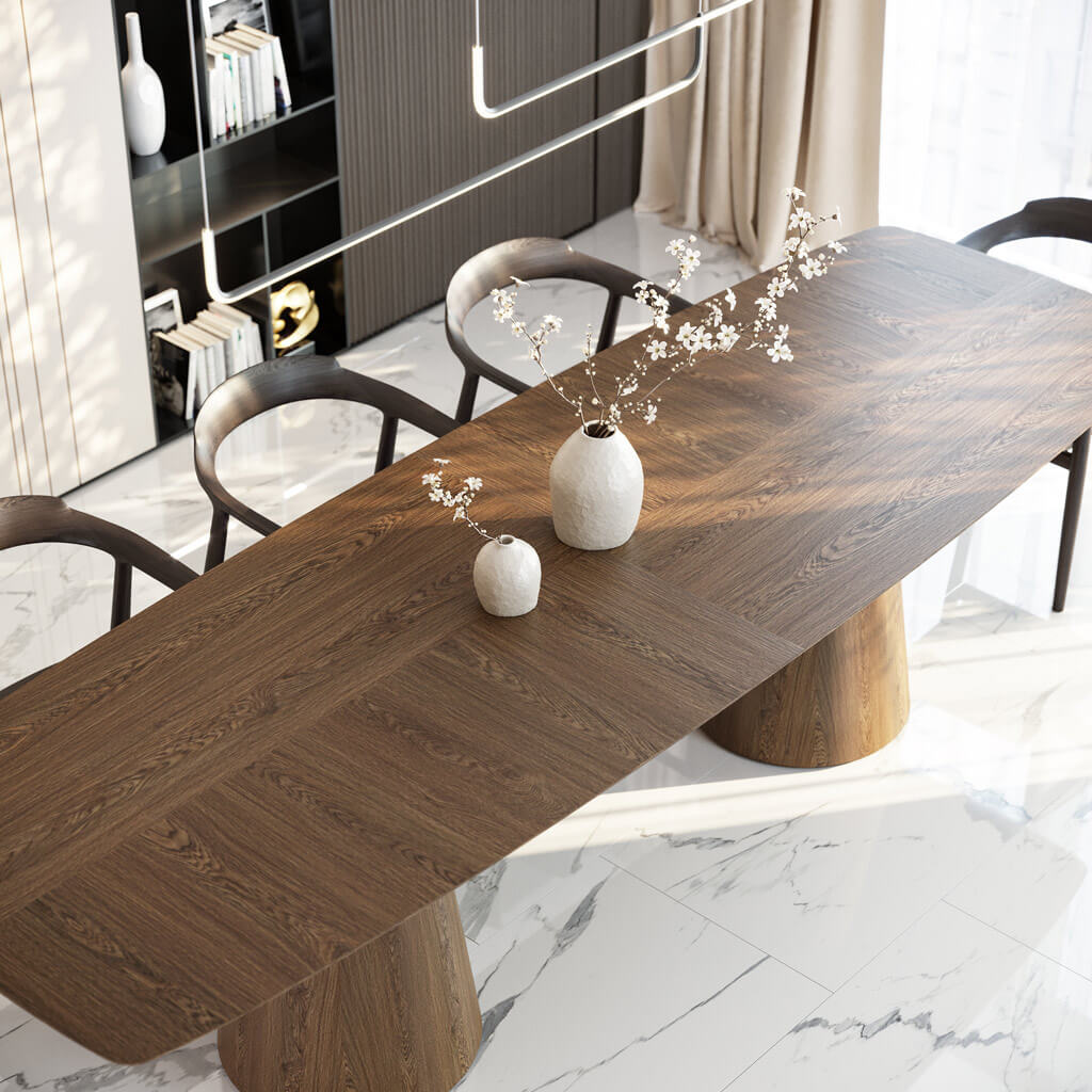 The acoustic properties of the pedestal ensure minimal noise during chair movement or other manipulations around the table. Natural wood has damping properties, absorbing vibrations and preventing their transmission to the floor and surrounding structures.