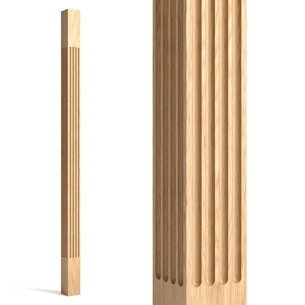 Wooden balusters L-099.1 – sheer simplicity. They have a square cross-section and their only ornamentation consists of vertical grooves, which emphasize the strictness and geometry of the model. These wooden balusters look great both individually and when combined with more complex and ornate models.