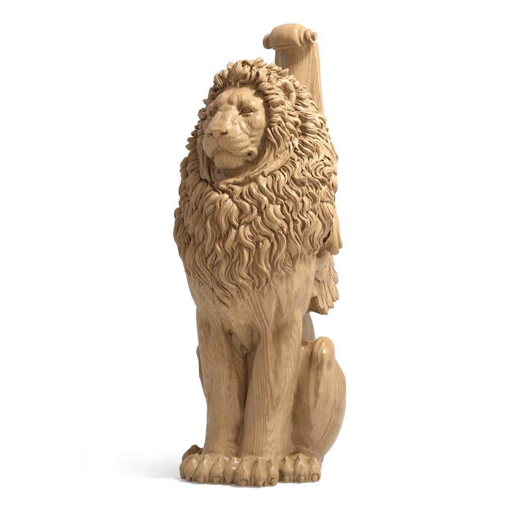Majestic and beautiful lion. The stair column L-108 resembles a majestic lion, proudly elevated and attracting attention with its expressive form and detailing. As a central element of the carved staircase, the carved column emphasizes the luxury and status of the space.