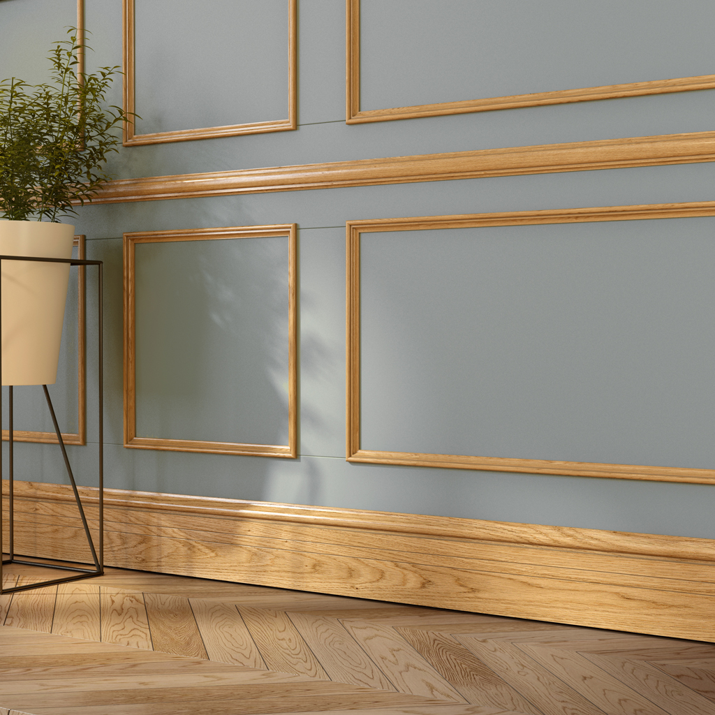 The thin-toned beech trim supports the atmosphere of European elegance and minimalist refinement in compact furniture structures and delicate interior finishing. It combines ideally withsolid wood skirting boardsthin dimensions for creating an elegant composition.