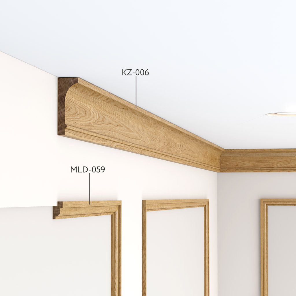 Professionalceiling corniceKZ-006 presents an elegant solution with compact 55×20 mm proportions, specifically designed for modern interiors with standard ceilings. Made from premium oak, European beech, and high-quality MDF, thiswooden cornicecreates elegant architectural accents without visually overwhelming the space.
