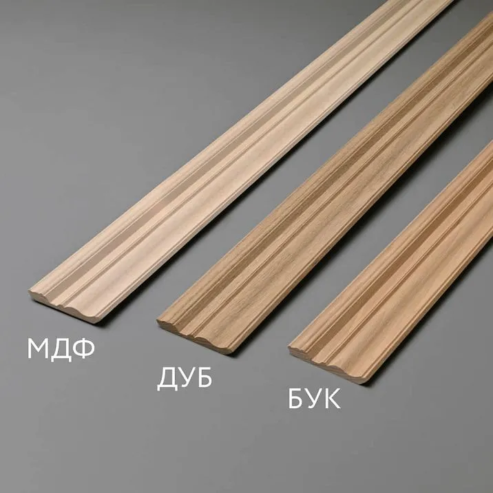 Cornice made of oakOn a compact surface, it demonstrates the full expressiveness of the wood grain. Preliminary conditioning with special compounds equalizes the absorption capacity of early and late wood.