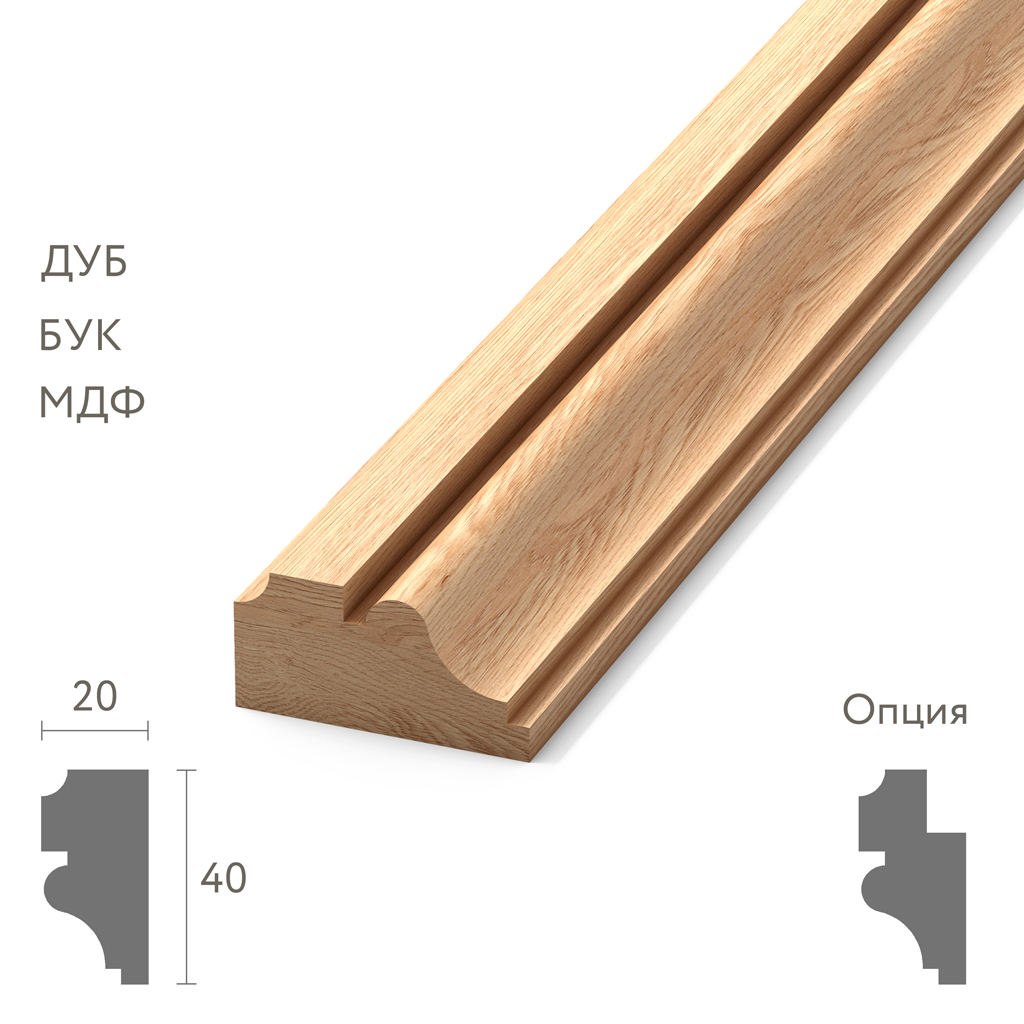 Optimal 40×20 moldingForms the basis for balanced furniture and mid-range finishes, where reliable, expressive proportions combine with exceptional natural wood stability.Wooden moldingOptimal quarter-round section brings classical elegance and balanced quality to reliable furniture structures and expressive interior compositions.