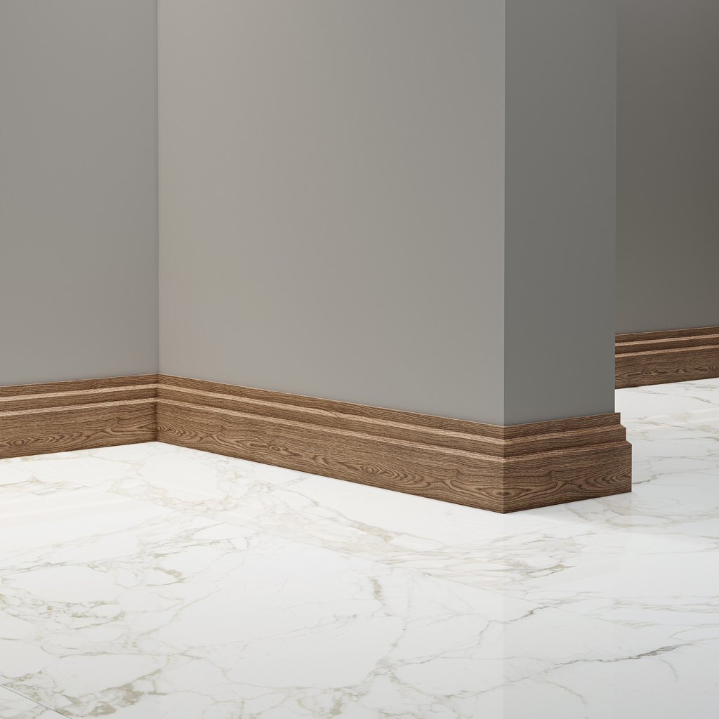 A medium oak skirting board/ceiling cornice creates a basis for finishing modern living spaces with universal floor and ceiling coverings and balanced decorative solutions. It pairs excellently withcornicesmedium-sized elements in a unified architectural style and universal material.