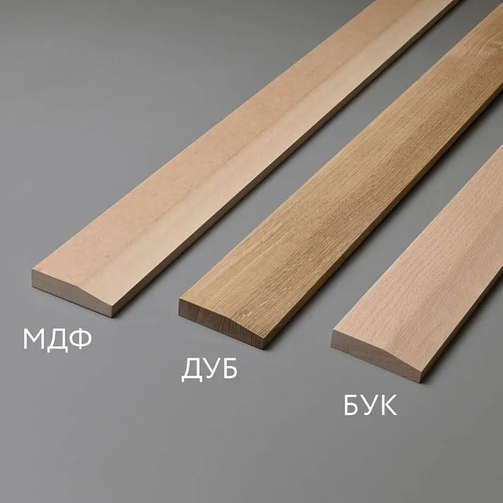 Purchasing wooden baseboard/sole from oak, beech, MDF, or moisture-resistant MDF means selecting a high-thick decorative element to create reinforced transitions and robust architectural detailing in various premium-class construction projects, ensuring flawless performance for years to come.