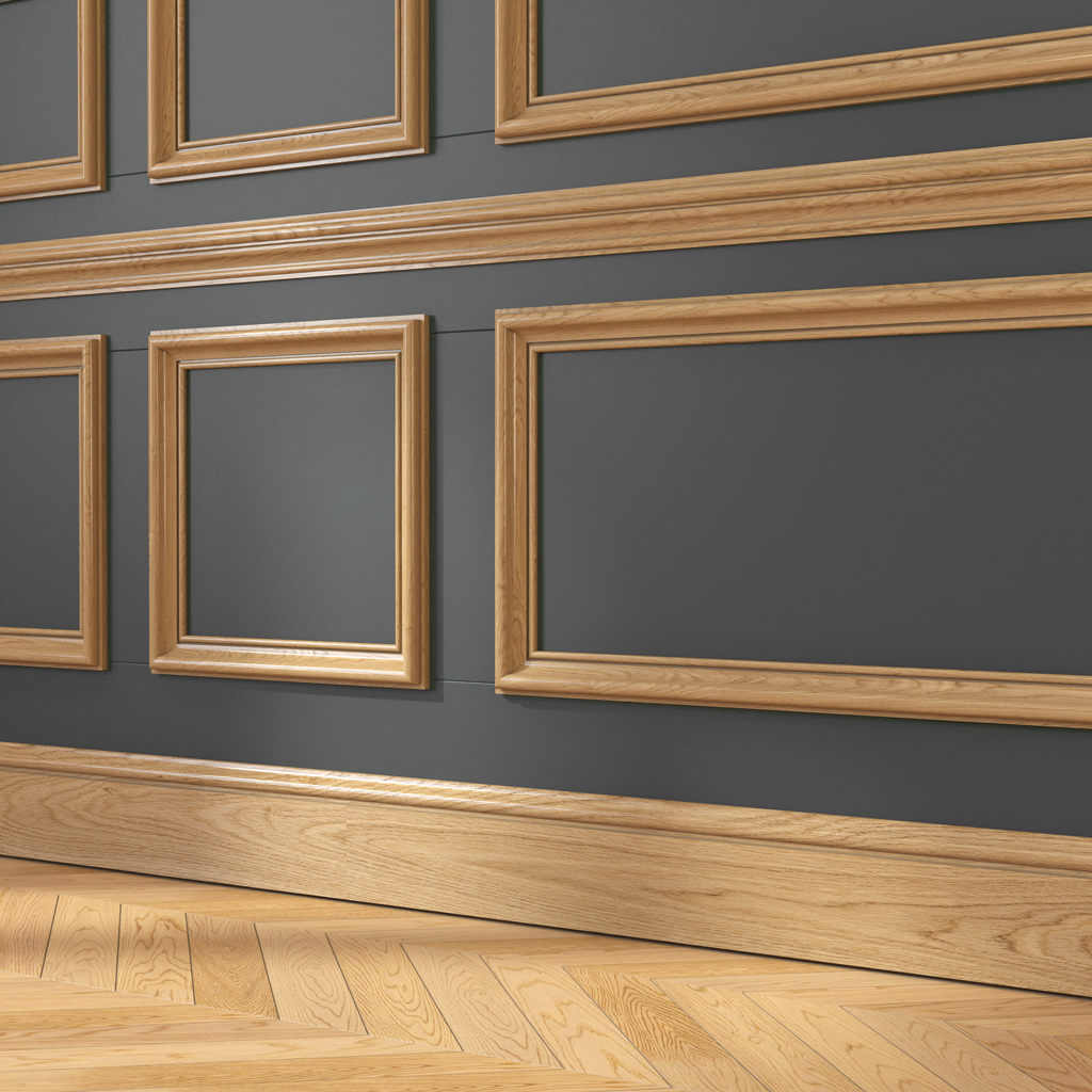 Oak skirting with classic lacquers creates expressive lines for traditional elegant finishing of noble design and classical level of neoclassical style. Complemented byplinthwide sections to create reliable architectural compositions.
