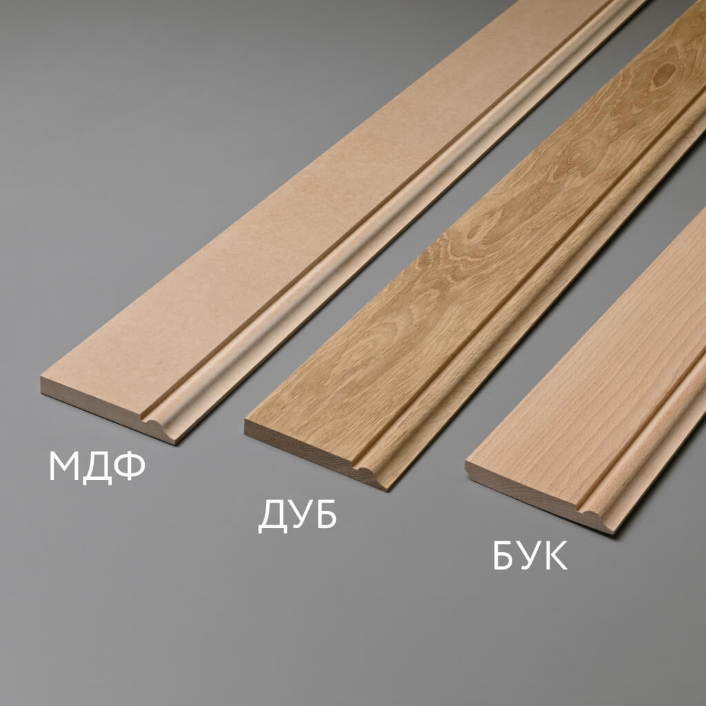 For luxury interiors — oak; for classic applications — beech; for modern solutions under enamel — MDF; for humid rooms — moisture-resistant MDF.