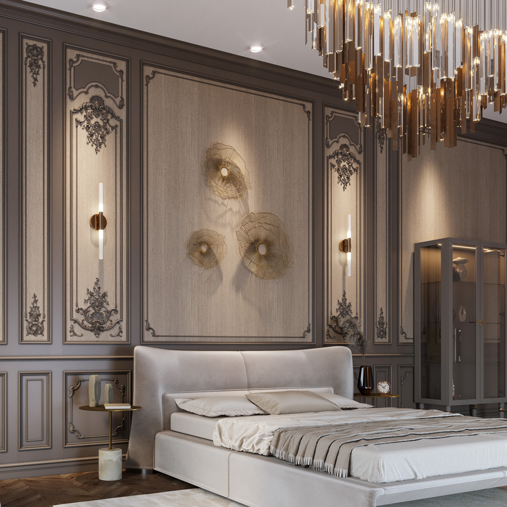 - Elegant design. The set’s ornaments are meticulously crafted down to the smallest details to emphasize the luxury of the interior. Refined shapes suit both classic and modern interiors.