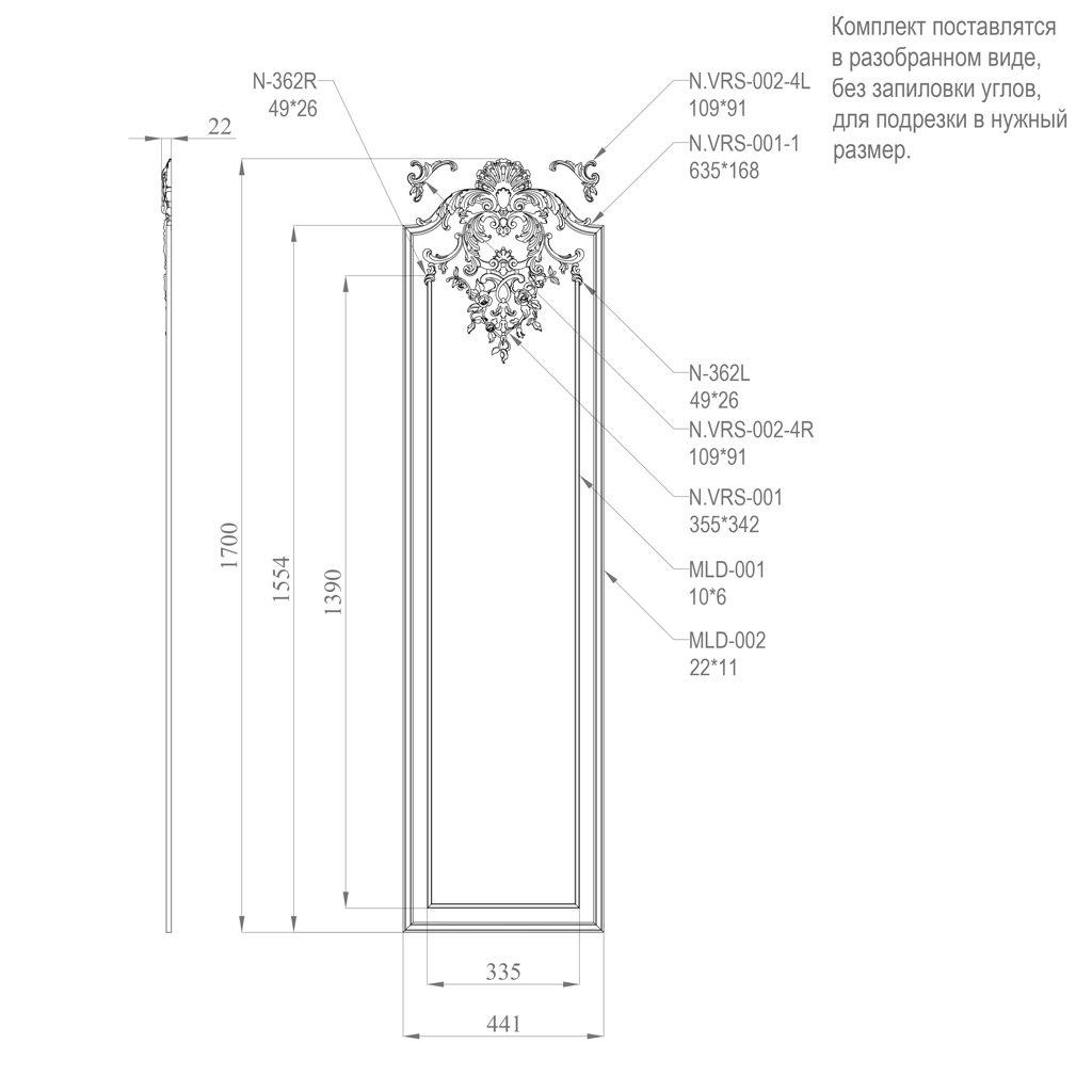 The C.VRS-060 set is suitable for decorating doors, turning them into a striking interior element. These decorative door elements will highlight the room’s style and add emphasis to unique details. With this set, you can create a classic, neoclassical, or even modern style. Visit the section decor for furnitureto choose the right set for your needs.