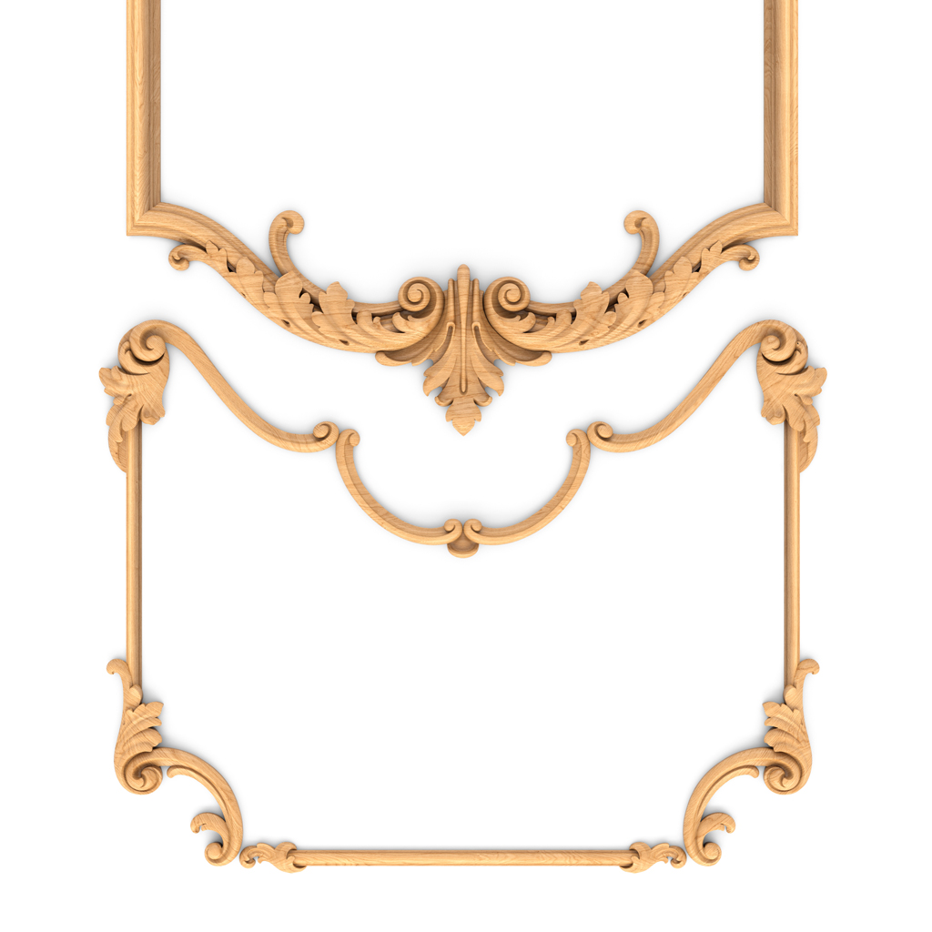Decorating mirrors or paintings carved inlays By using the C.VRS-061 set, you will emphasize their elegance and complete the interior. This approach is especially relevant for living rooms and bedrooms designed in a classic style.