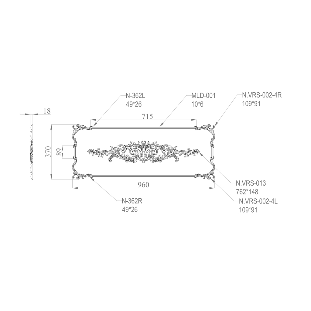 The C.VRS-064 decor set is an exquisite collection of carved decorative elements made from solid wood, designed to adorn furniture, walls, and other interior details. This set combines artistic carving, the natural beauty of wood, and functionality, making it an ideal choice for those who wish to add individuality and expressiveness to their space.