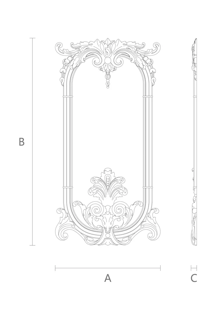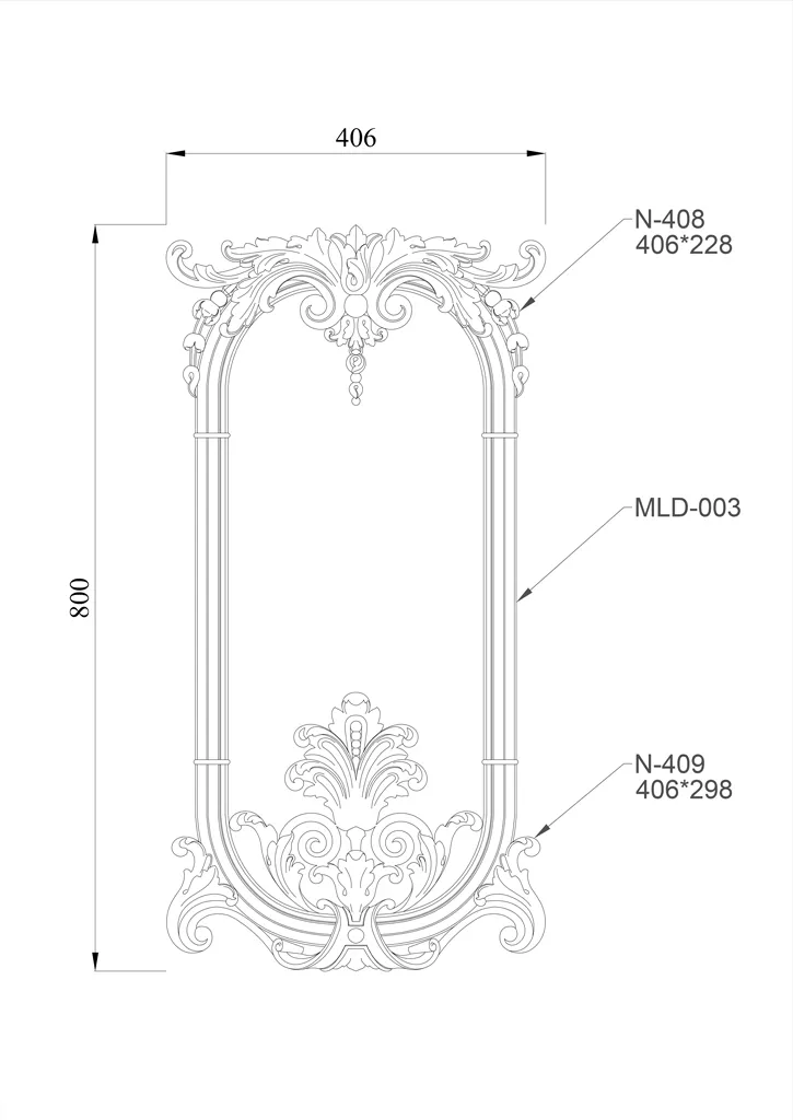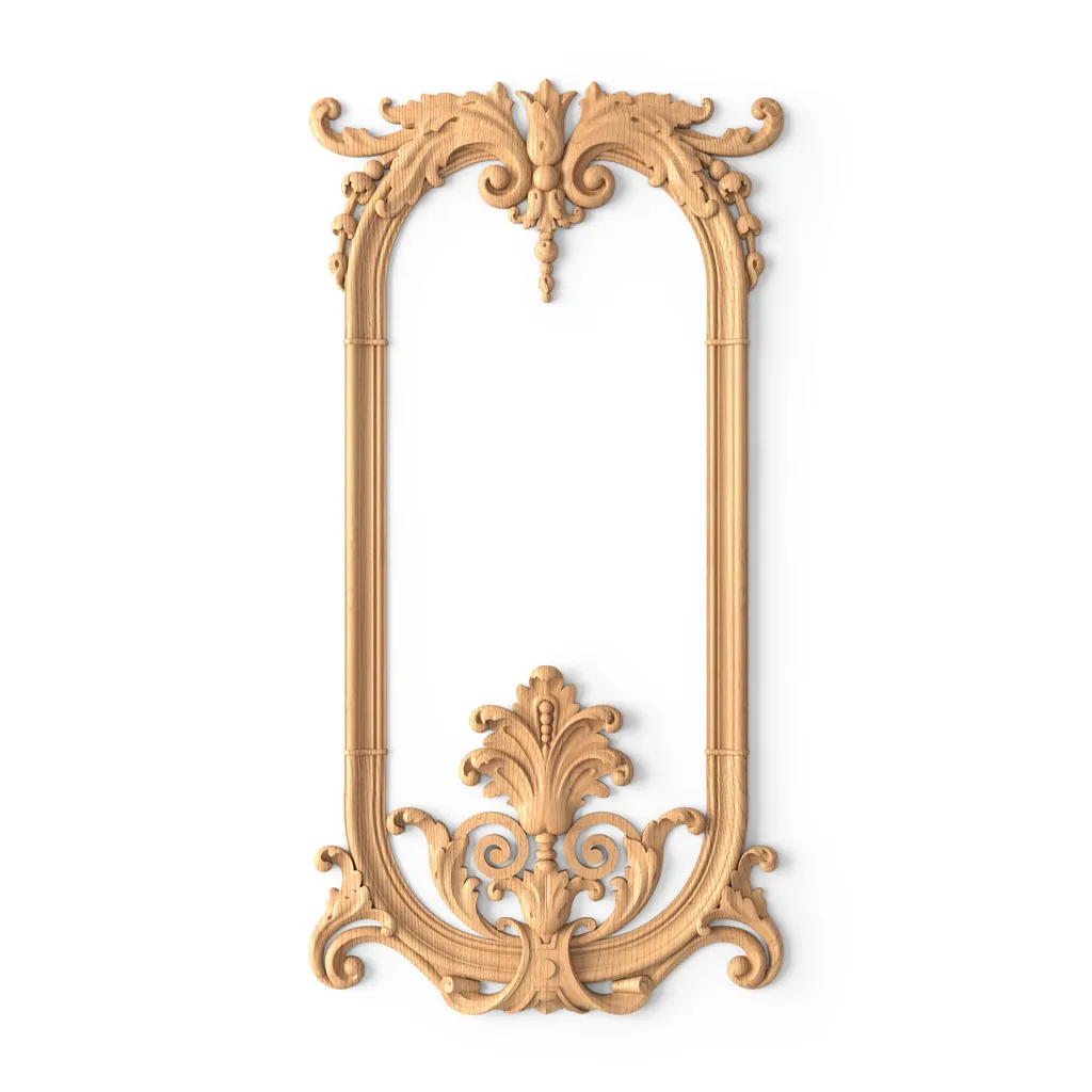 Wooden appliqué with carving and molding for furniture and wall decoration drawing