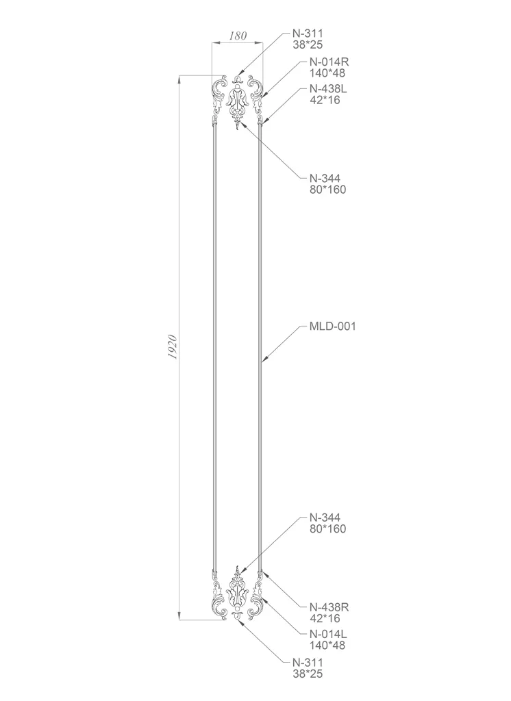 ● Carved Appliqué N-014R. This is the right part of a rectangular appliqué with the same dimensions and pattern as N-014L. It can also be combined with it or used separately, depending on your taste and style.