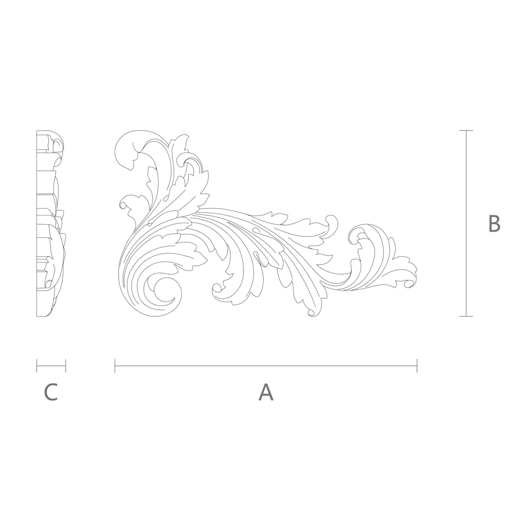 ● You can glue or attach the inlay to the wall to make it more interesting and lively. The inlay suits any wall, whether gypsum board, wallpaper, panels, or other materials. You can choose the color of the inlay that will harmonize with the wall color or create contrast. You can use one or several inlays to form an accent or pattern on the wall.. The wooden carved insert N-013R can be used to decorate the ceiling, for example, as a curtain valance, molding for cornice, or frame for chandelier or lamp. It will add luxury and elegance to the ceiling and also conceal possible flaws or seams. The wooden carved insert N-013R is suitable for decorating ceilings in any interior style - from classic to modern.