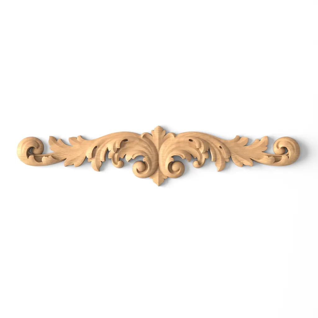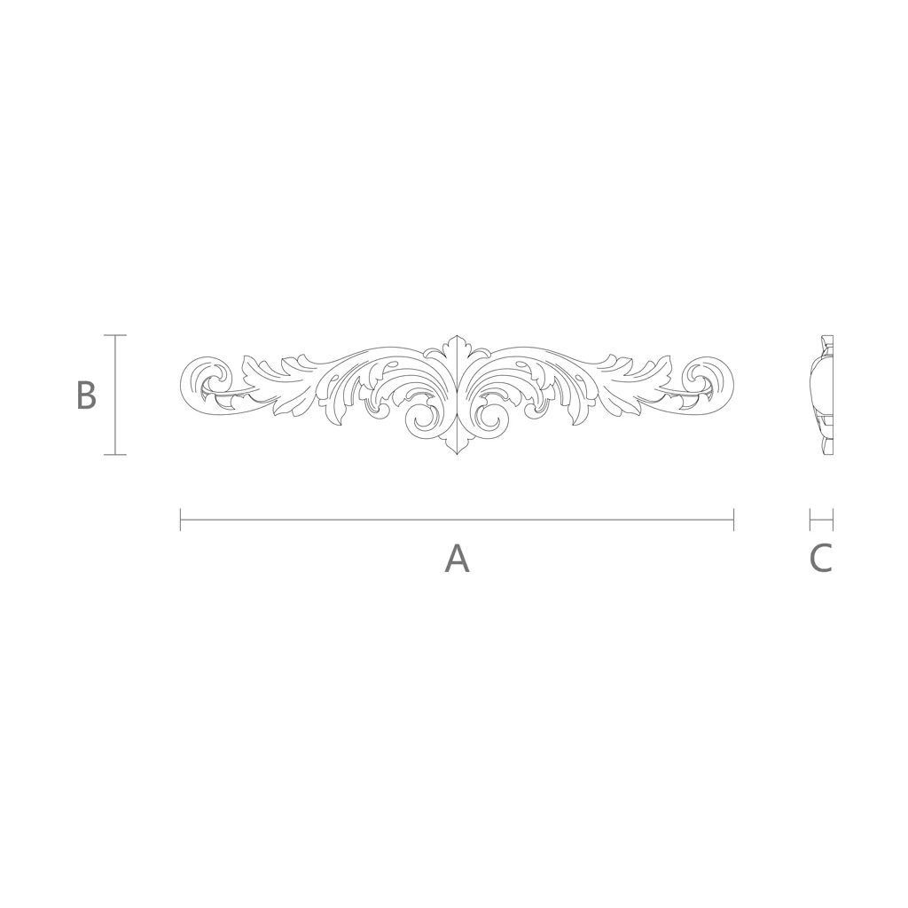 Carved wooden inlay N-032 is a decorative elementused to decorate various surfaces, such as furniture, doors, walls, or ceilings. It is made from oak or beech, which are strong, durable, and beautiful wood species. Wood carving is an artistic technique that requires talent, experience, and creativity. Each wooden inlay N-032 is a unique item with its own style and character.
