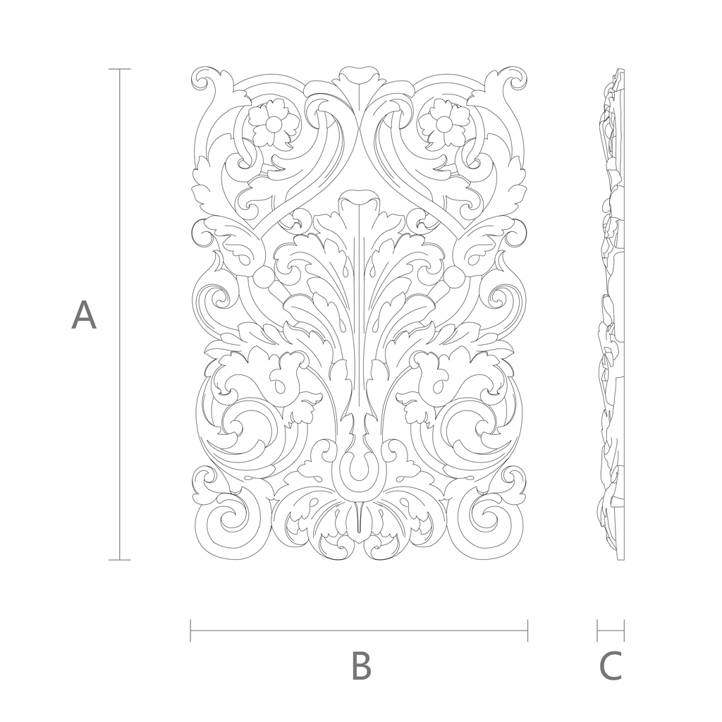 decorative insert N-060-2 made of wood, carved, is crafted from high-quality natural wood. You can choose between two types of wood: oak or beech. Both types of wood are distinguished by their strength, durability, eco-friendliness, and beauty. Oak is a hard and heavy wood with a dense and even structure, as well as a golden-brown hue. Beech is a soft and lightweight wood with a fine and smooth structure, as well as a light-yellow hue. Both types of wood are easy to process and carve, and they have a pleasant aroma and warmth. The overlay is made from a single piece of wood, which is pre-treated with special agents to protect it from moisture, mold, insects, and other external influences. Then the wood undergoes hand carving, performed by skilled artisans using specialized tools. Wood carving is an artistic technique that allows creating various patterns and designs on a wooden surface using a chisel, knife, gouge, or other sharp tool. Wood carving requires patience, skill, and imagination to create a beautiful and original piece. After carving, the overlay is coated with varnish or oil to give it a shine and protection. A carved wooden overlay is not just a decorative element, but a true work of art, created with love and craftsmanship.