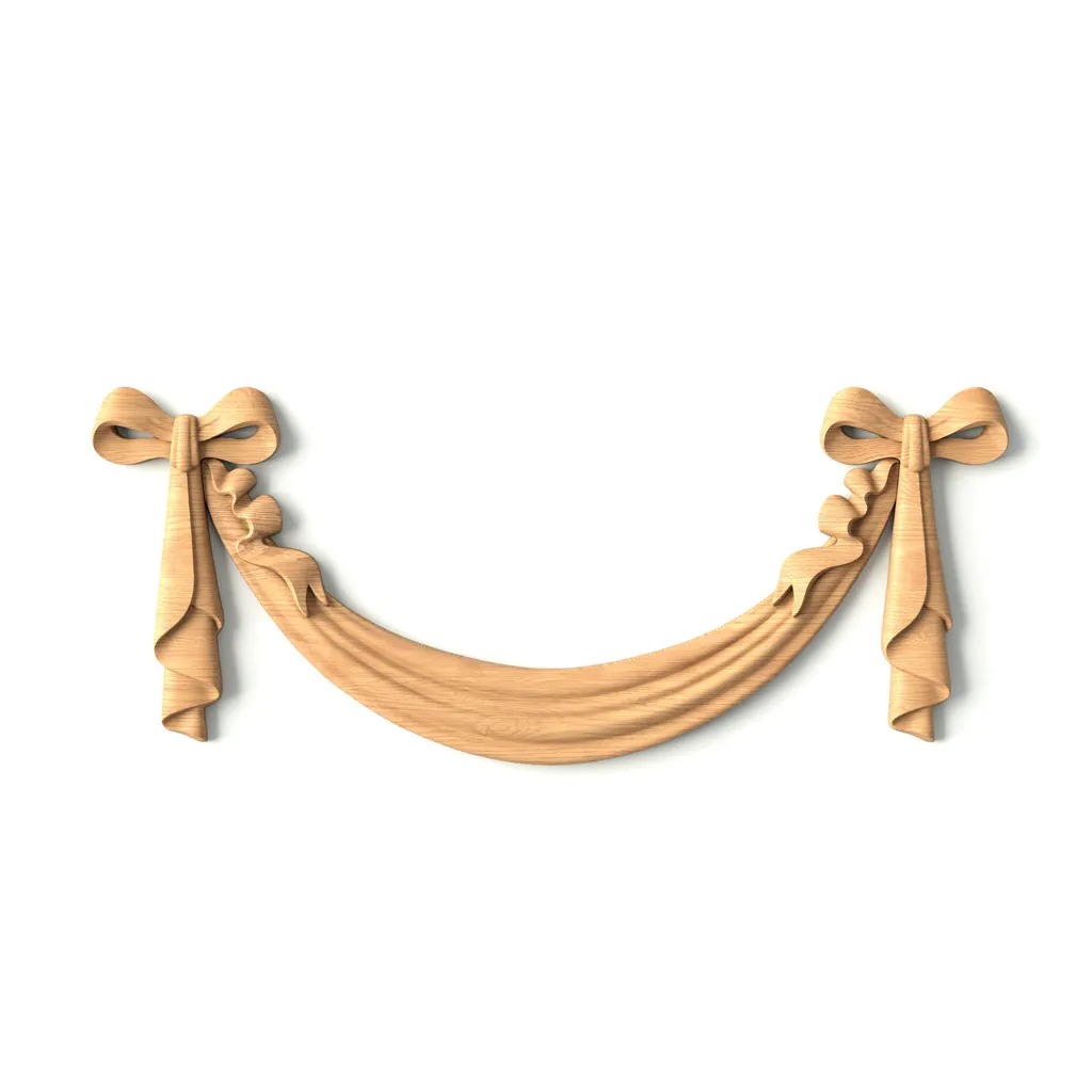 Decorative applique N-079-2 is one of the options for wooden decor that you can buy at the decor store Stavros. This is carved wooden decor adorned with a bow. This is an applied element that can decorate any furniture or interior. It is a symbol of a gift, celebration, joy, and mood. It is your choice and your style.
