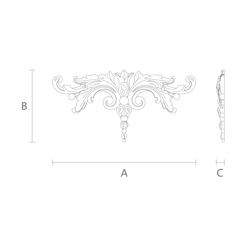● decor for furnitureYou can attach the carved wooden inlay N-107 to any furniture: cabinet, chest of drawers, bed, table, nightstand, etc. It will add elegance and originality to your furniture, as well as conceal any scratches or wear. You can choose the size and color of the inlay that harmonizes with your furniture and overall interior style. The carved wooden inlay N-107 suits both classic and modern design.