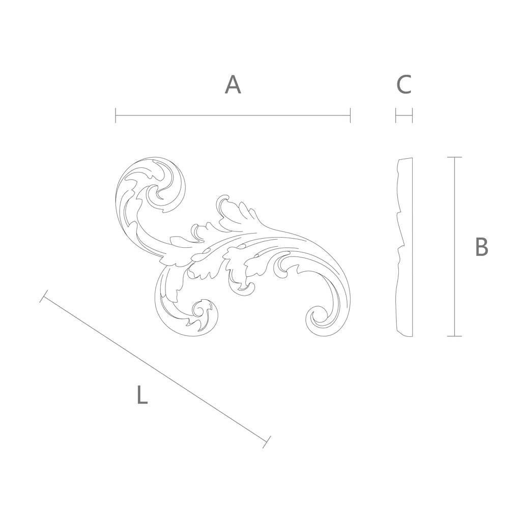 Decorative overlay N-369L is one of the options for furniture decor that you can buy at the Stavros decor store. It is carved wooden decor adorned with leaves. It is a surface-mounted element that can decorate any furniture or interior. It is a symbol of nature, growth, life, and renewal. It is your choice and your style.