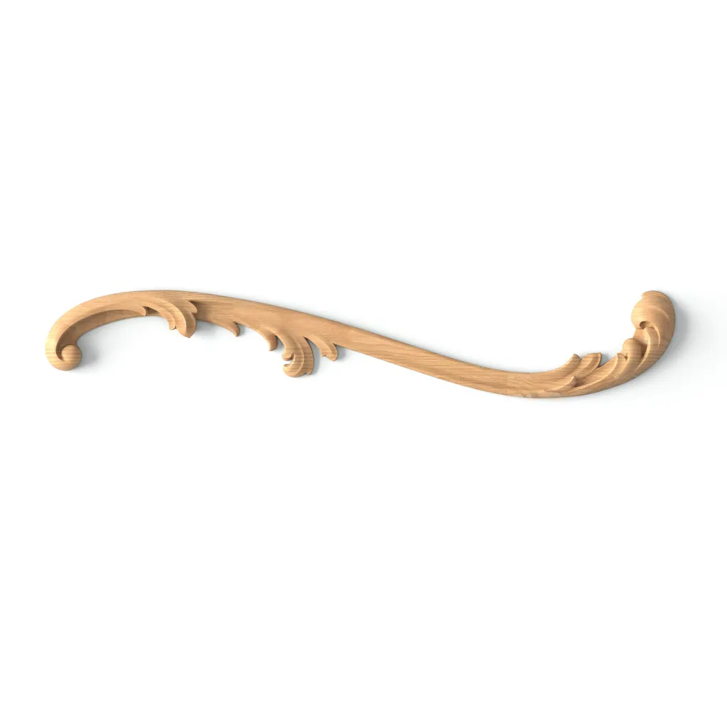 The carved applique N-423R looks very elegant and refined. It is shaped like leaf branches, which have different forms and sizes. They evoke the diversity and richness of nature, its vitality and grace. They also symbolize growth and development, freshness and greenery, harmony and balance. The wood carving is executed very carefully and delicately, with attention to details and nuances. It captures all the curves and folds of the leaves, their veins and texture, their volume and relief. It creates a play of light and shadow, which gives the applique liveliness and dynamism.