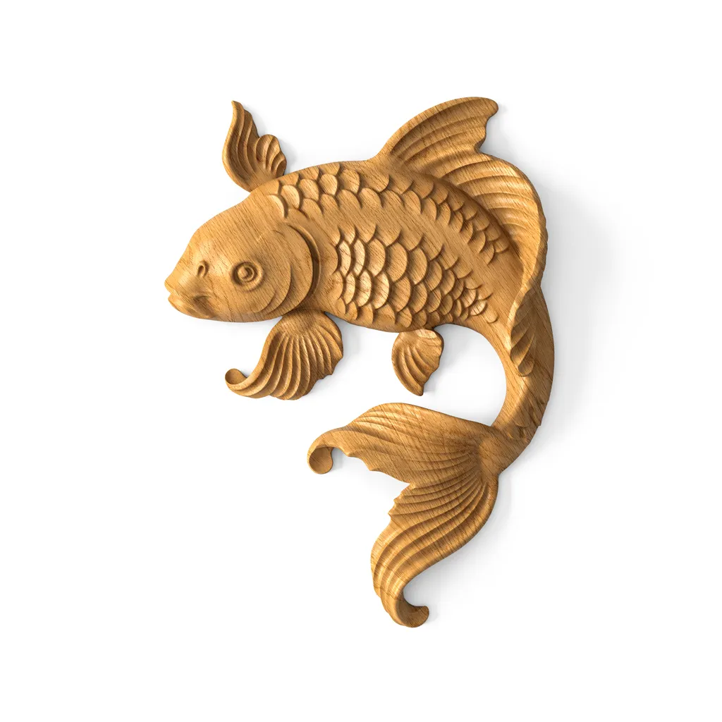 Using carved inserts for wall decoration allows you to add additional texture and relief to the interior, making the space more lively and interesting. In interiors with a natural theme, the fish-shaped insert will become a striking accent, emphasizing the overall style of the room.