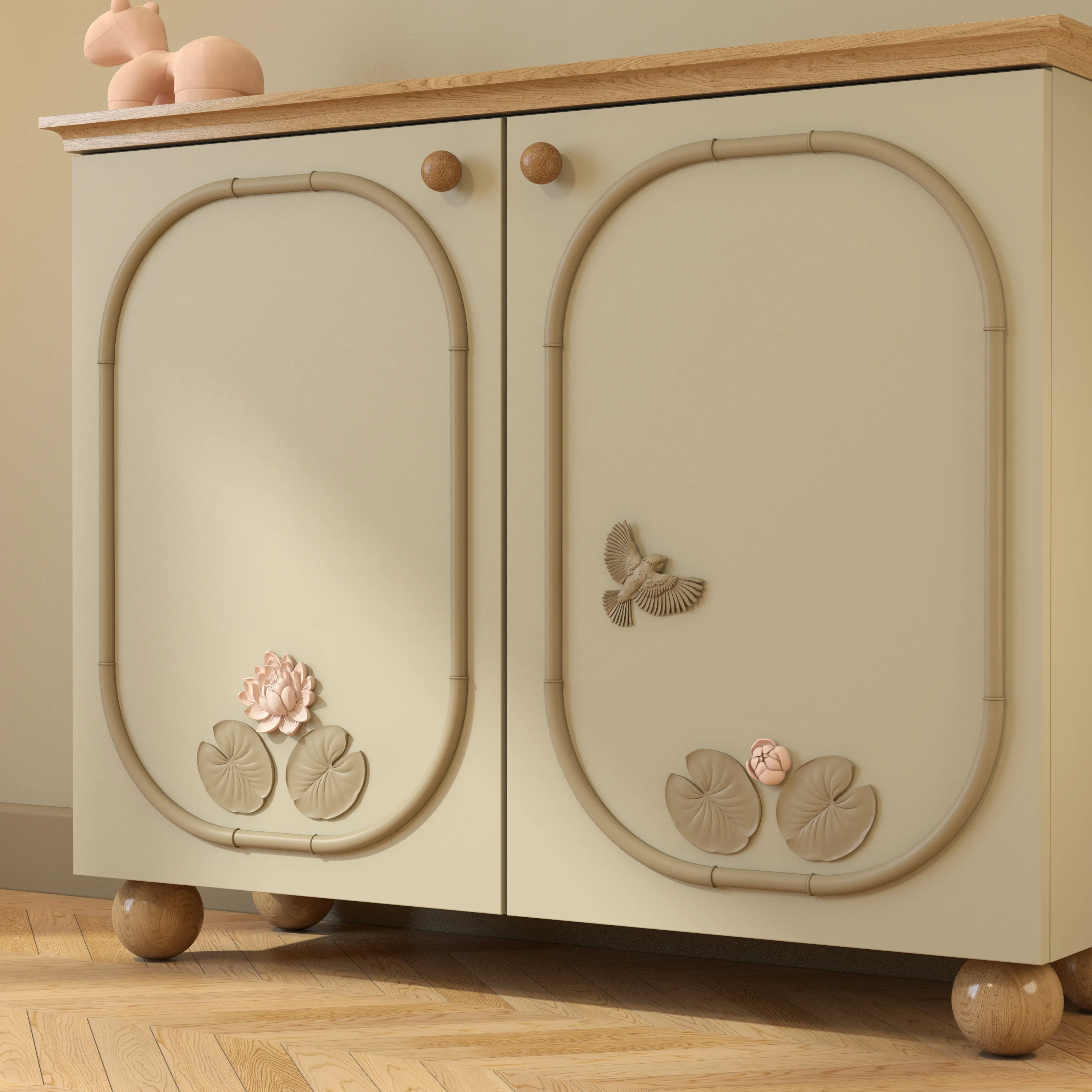The veins on the surface of the item are finely detailed, creating a subtle 3D effect. This emphasizes the beauty of the wood and introduces a motif of natural harmony into the interior. - Universality