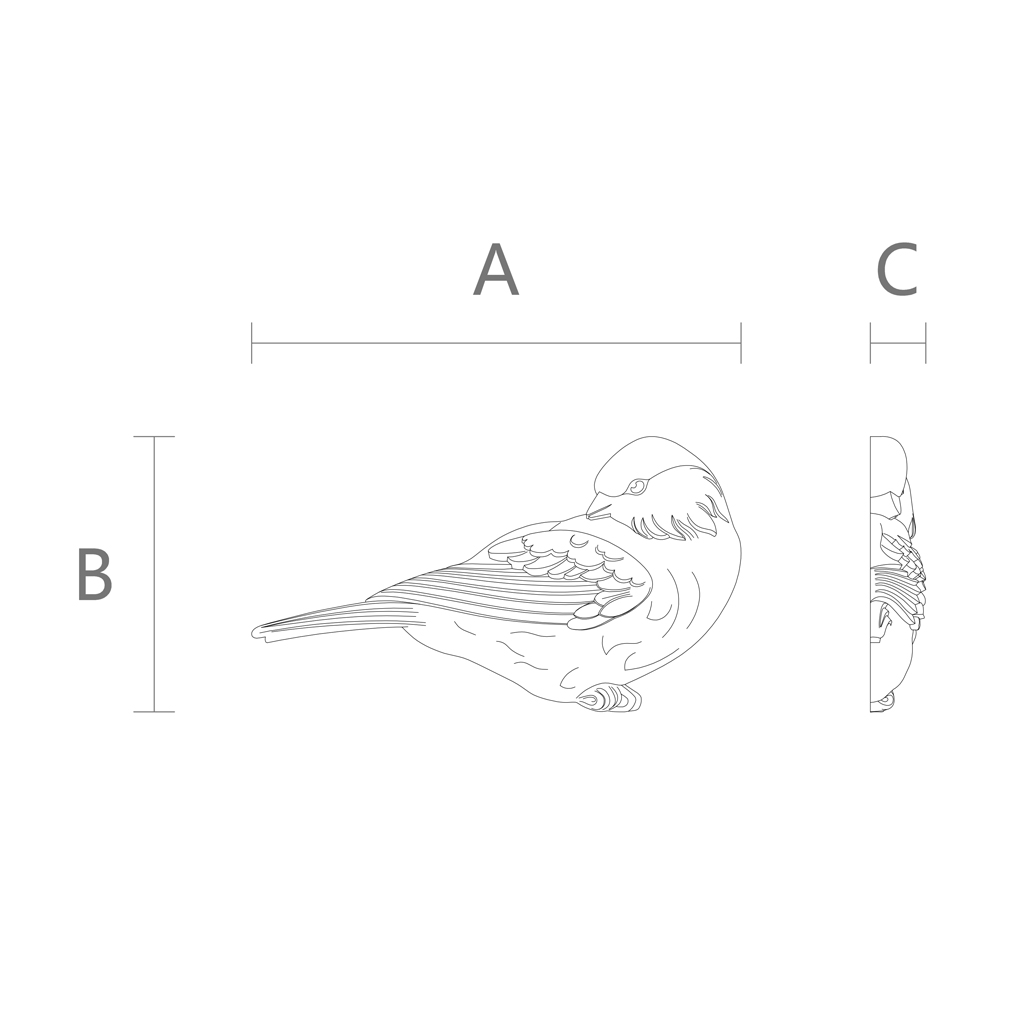 Wooden OverlayN-497L represents a carefully crafted image of a sitting bird, made of natural honey-colored wood. Every detail of this item is created with remarkable precision – from the elegantly curved head to the finest feathers on the wings and tail.