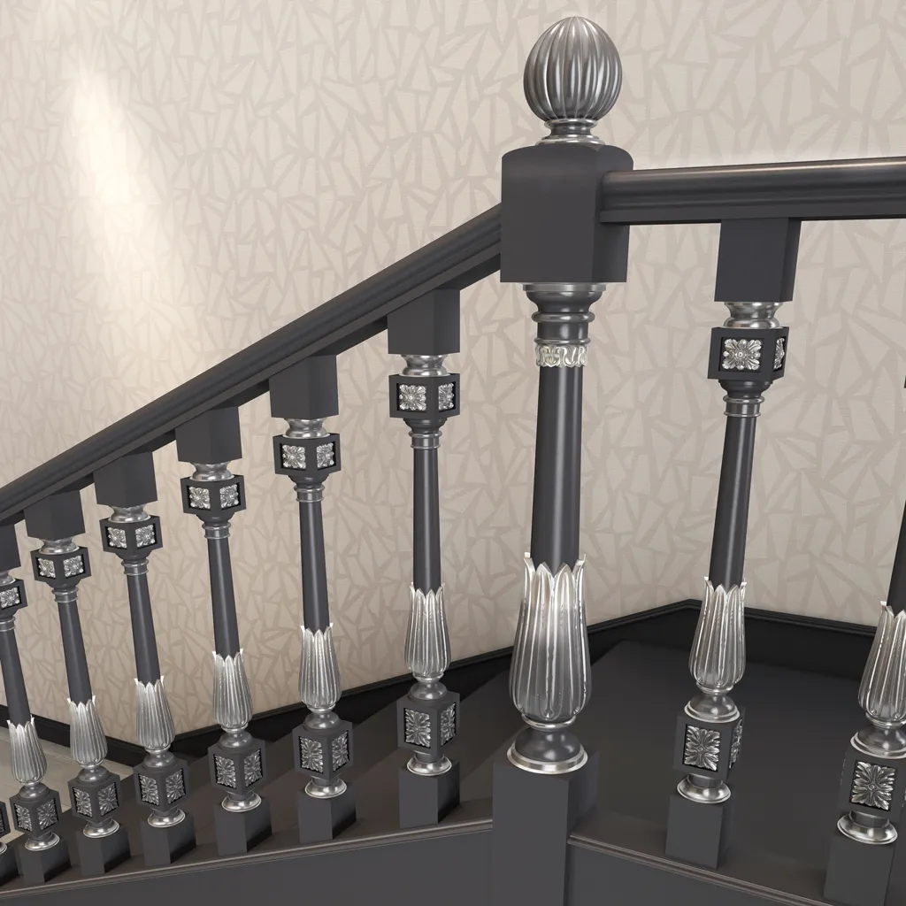 ● Round newel caps have the shape of a hemisphere or sphere, which may be smooth or carved. These caps suit classical and romantic interiors, as well as staircases with round posts.