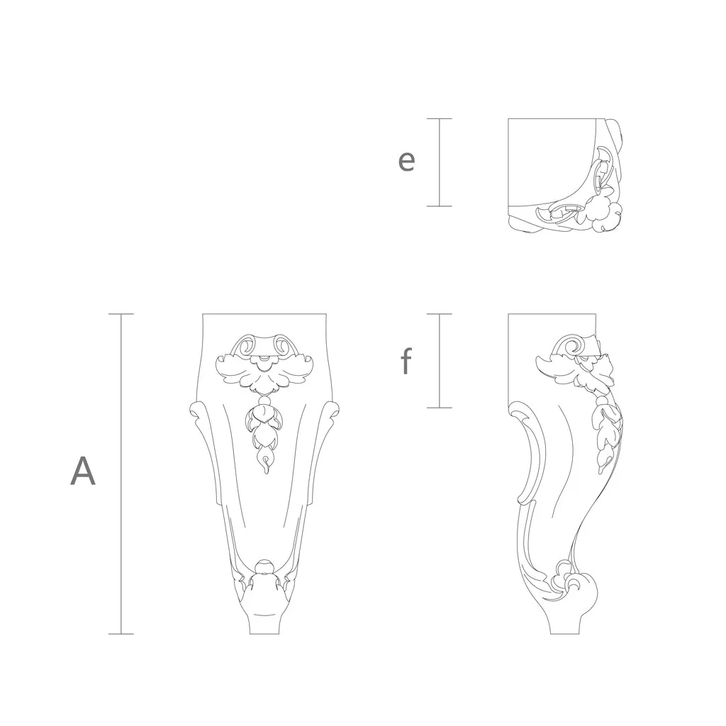 ● Wooden material. The carved furniture leg MN-073 from wood is made from high-quality wood — oak or beech, which are among the strongest and most durable wood species. They are resistant to rot, moisture, pests, and deformation. They also have a pleasant texture that highlights the natural beauty of wood. They are easy to process, paint, and stain, while maintaining their shape and color. They are also eco-friendly and safe for health. Wooden material gives the leg warmth, coziness, and naturalness, creating an atmosphere of a home hearth and comfort.