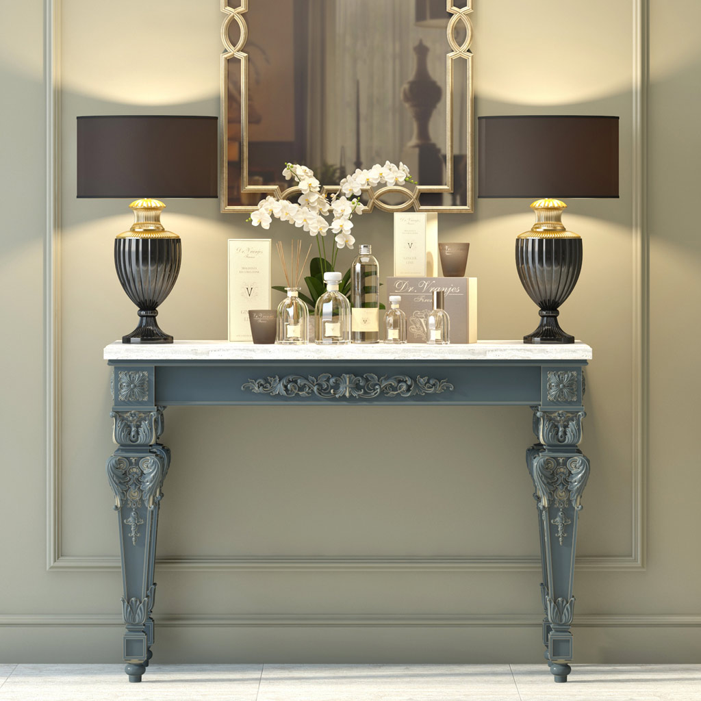 The carved wooden leg MN-191 is a console leg that can be used for various purposes. A console is a small table that is usually placed against a wall or window and serves for storing or decorating various items. A console can be used in a hallway, living room, bedroom, office, or other rooms. A console can be made in various styles, from classic to modern, and have different shapes, colors, and sizes.