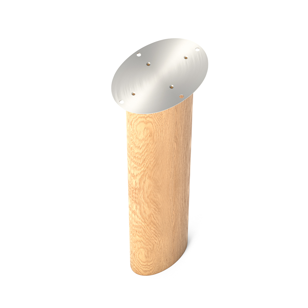 • Expressive wooden vertical support with streamlined shape and oval cross-section. Comes with a mounted metal mounting plate (2 mm thick).