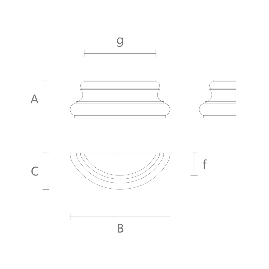 The Base for Pilaster BS-005 is a key element in creating structural integrity and aesthetic harmony of architectural forms. This is not merely a stand, but a fundamental part of the architectural ensemble, which highlights the beauty of vertical lines of pilasters and columns, ensuring their stability and longevity.