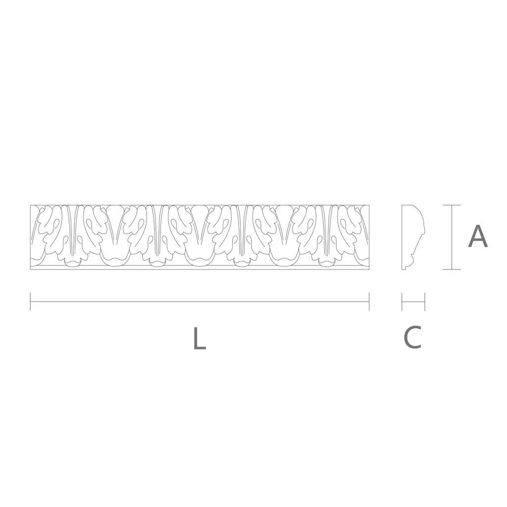 ● Carved molding K-001 has a complex and beautiful pattern in the form of an acanthus leaf, which is one of the most common and recognizable motifs in classical art. The acanthus leaf is a stylized depiction of the acanthus plant leaf, which has a curved shape, serrated edges, and swirls at the ends. The acanthus leaf symbolizes life force, growth, fertility, and eternity. The acanthus leaf is used in various forms of ornamental art, such as architecture, sculpture, painting, graphics, applied arts, etc. The acanthus leaf adds nobility and richness to the project, emphasizing the style and taste of the interior. Carved molding K-001 with an acanthus leaf is used in furniture, interiors, staircases, ceilings. Often used in church-related objects. Carved molding K-001 combines beautifully with other elements of more complex carving.