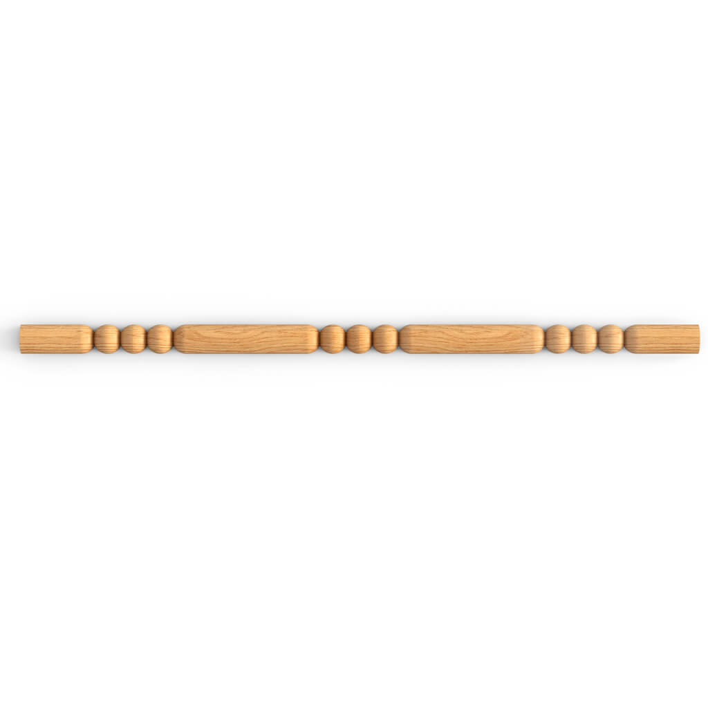 Wooden trim K-034 "beads with glass beads" is more often used as an additional element to an existing composition to make it more complete and attractive. Simple geometric pattern combines well with more complex carved elements. However, this model's trim is also suitable for minimalist projects where small accents are needed without overloading the concept with complex carving. Wooden trim K-034 is used in furniture, staircases, wall panels, kitchen facades, friezes, and church-related objects.