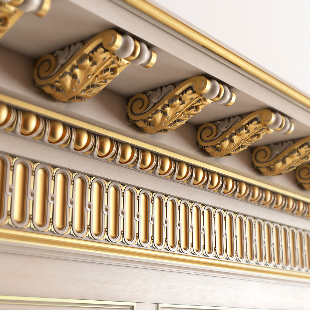 Furniture and built-in cabinets: Adding carved molding to cabinet, chest, or bookshelf facades can transform ordinary furniture into exclusive interior pieces.