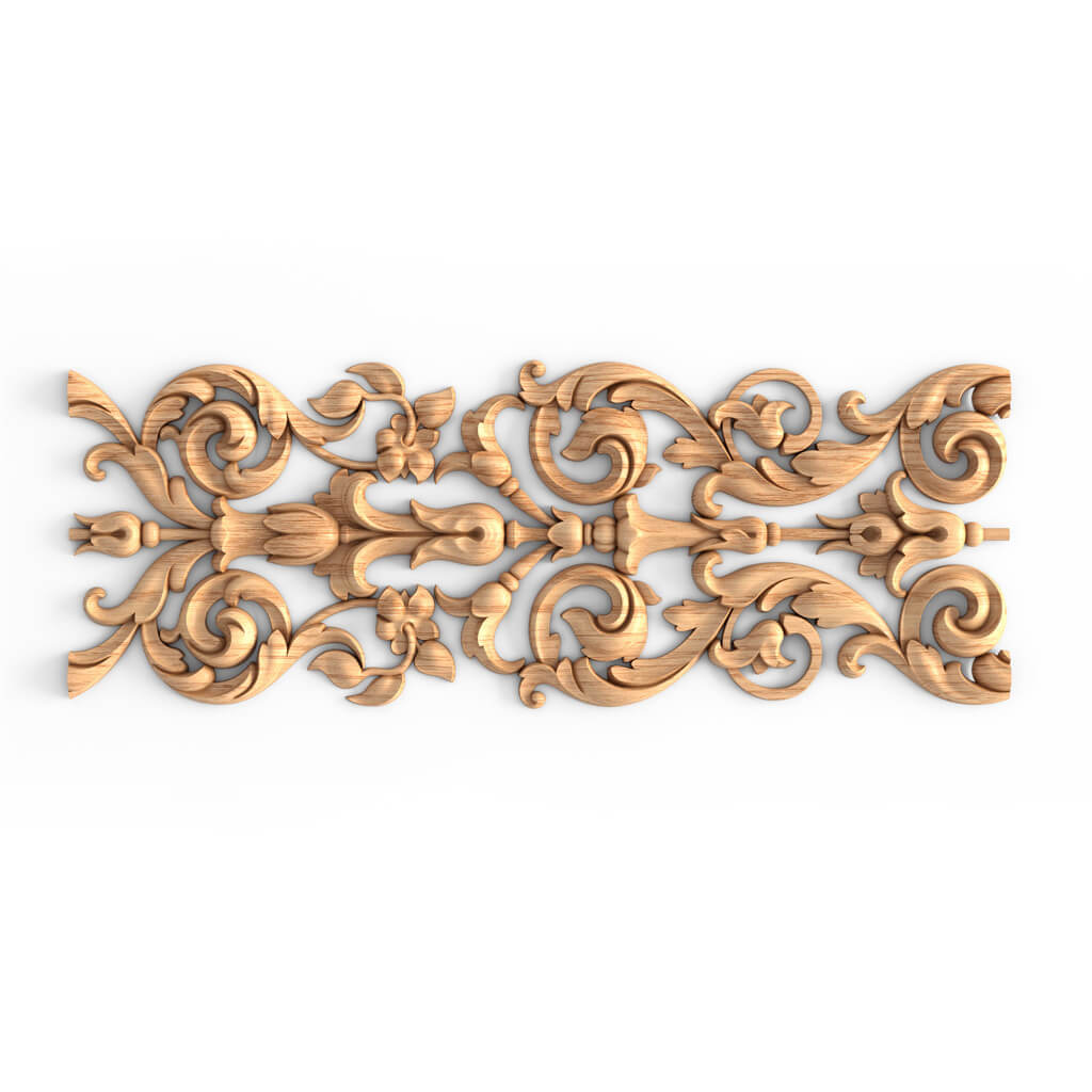 Wooden Molding K-069 is crafted in the Baroque style. Its luxurious floral and vegetal ornament allows for creating a vast number of unique projects. It harmonizes beautifully with carved elements of classical styles. The width of the frieze in the standard size grid is based on the most popular parameters. The rich, saturated pattern allows for using its components separately — flowers, scrolls, and leaves. Carved molding K-069 can be used in wall, ceiling, staircase, door, kitchen, and bedroom furniture design. Often, it becomes an ornament for church-themed objects.