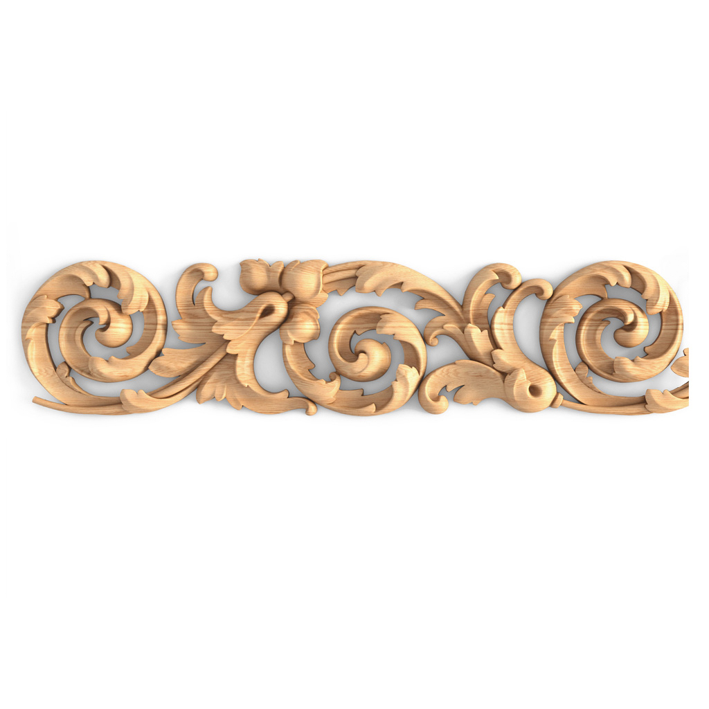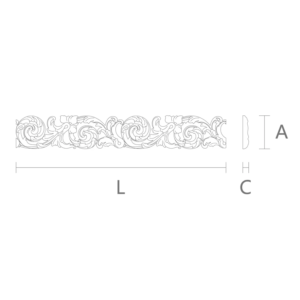 The carved frieze in K-081 is in the Baroque style. It is classic and luxurious. It harmonizes with any elements featuring floral patterns. It integrates organically into staircase, kitchen, and bedroom furniture designs. The rich, ornate pattern will adorn the office or living room. It is often used in church projects. In non-standard solutions, this wooden frieze is popular for TV zones and mirror frames.