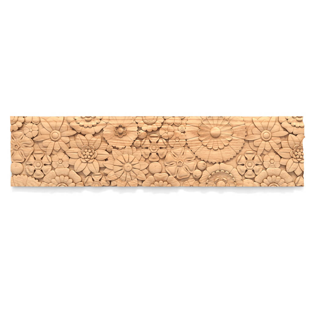 Decorative wooden molding K-102 with floral pattern — a popular model for decorating furniture and interiors. Thanks to its minimalist design, it perfectly complements bed, nightstand, wardrobe, wall panel, and furniture facade designs. The wooden molding K-102 belongs to the art deco style, yet seamlessly integrates into modern projects. The floral ornament adds originality and elegance to furniture and interiors.